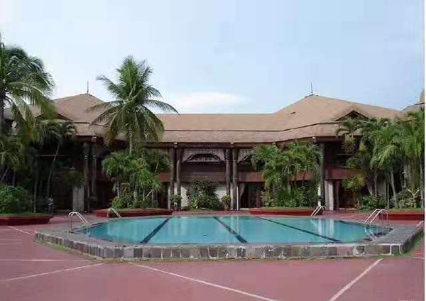 椰子宫建于1981年1月,背倚风景优美的马尼拉湾,周围的绿化区共占地8000多平方米。椰子宫的六角形褐色屋顶,一共使用了2000多棵树龄在70年以上的椰树。