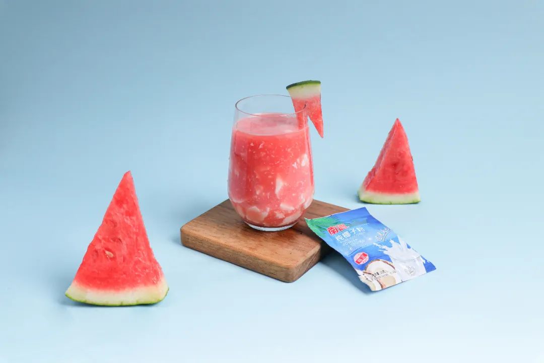嫩滑的椰奶块,与清爽的西瓜汁在舌腔中跳舞,西瓜与椰奶的甜蜜清新直抵心窝,是那滚滚红尘中最肆意的快乐!