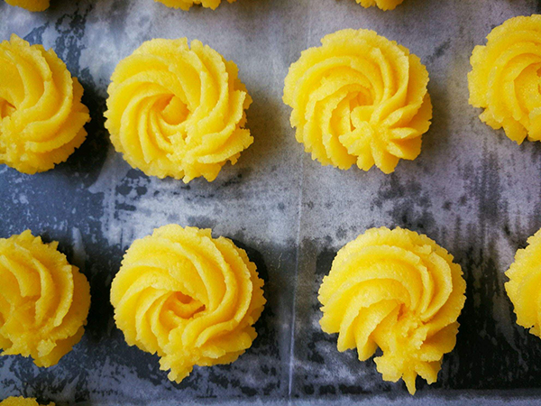 黄油120G、赤藓糖醇35G、蛋黄2个、喜马拉雅盐1G、香草精3滴、杏仁粉130G
