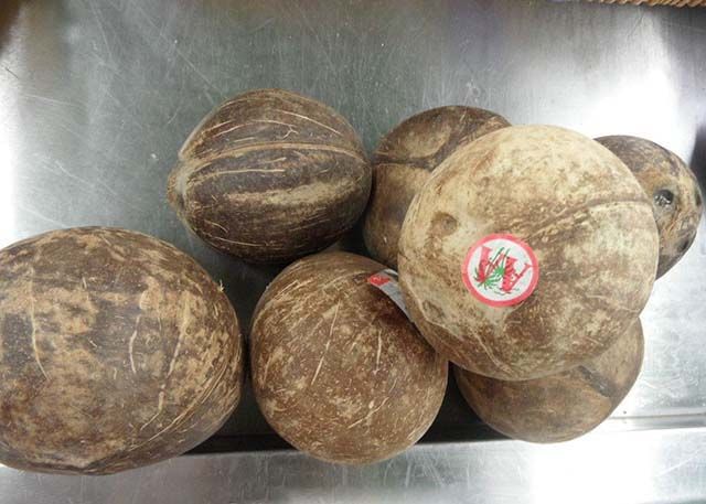 还有在旅游区千万别买那些剥掉皮放了很久的椰子,除非他是刚刚剥下不久就放到冰柜冷藏的。更不能买那些没有绿皮,摸上去干干的,甚至已经开始发黑椰子。