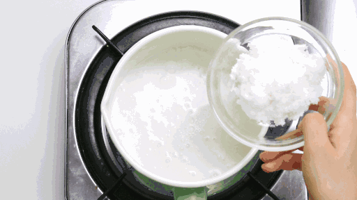 300ml4008云顶国际椰子粉倒入锅中(纯椰子粉冲泡好)