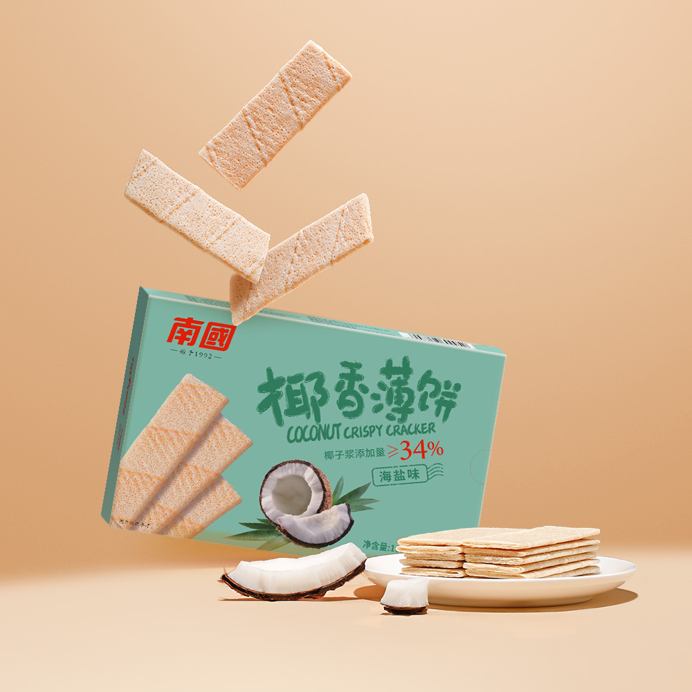 精选海南新鲜椰浆、小麦粉、米粉、鸡蛋、海盐为原料,椰浆含量>34%,椰香浓郁,口感微咸,酥脆可口,非油炸,低热量,好吃不上火。