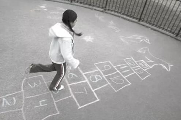 最开心的事是跳房子、丢沙包、抓石子儿、